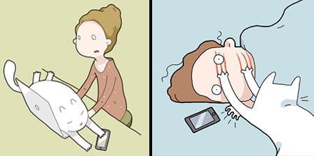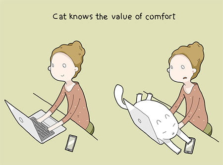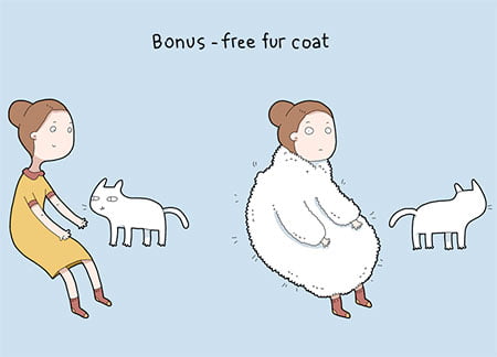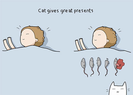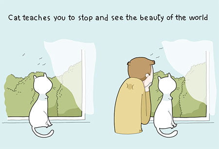 Series of whimsical illustrations shows people the benefits of having a cat.Learn why cats are the best pets.