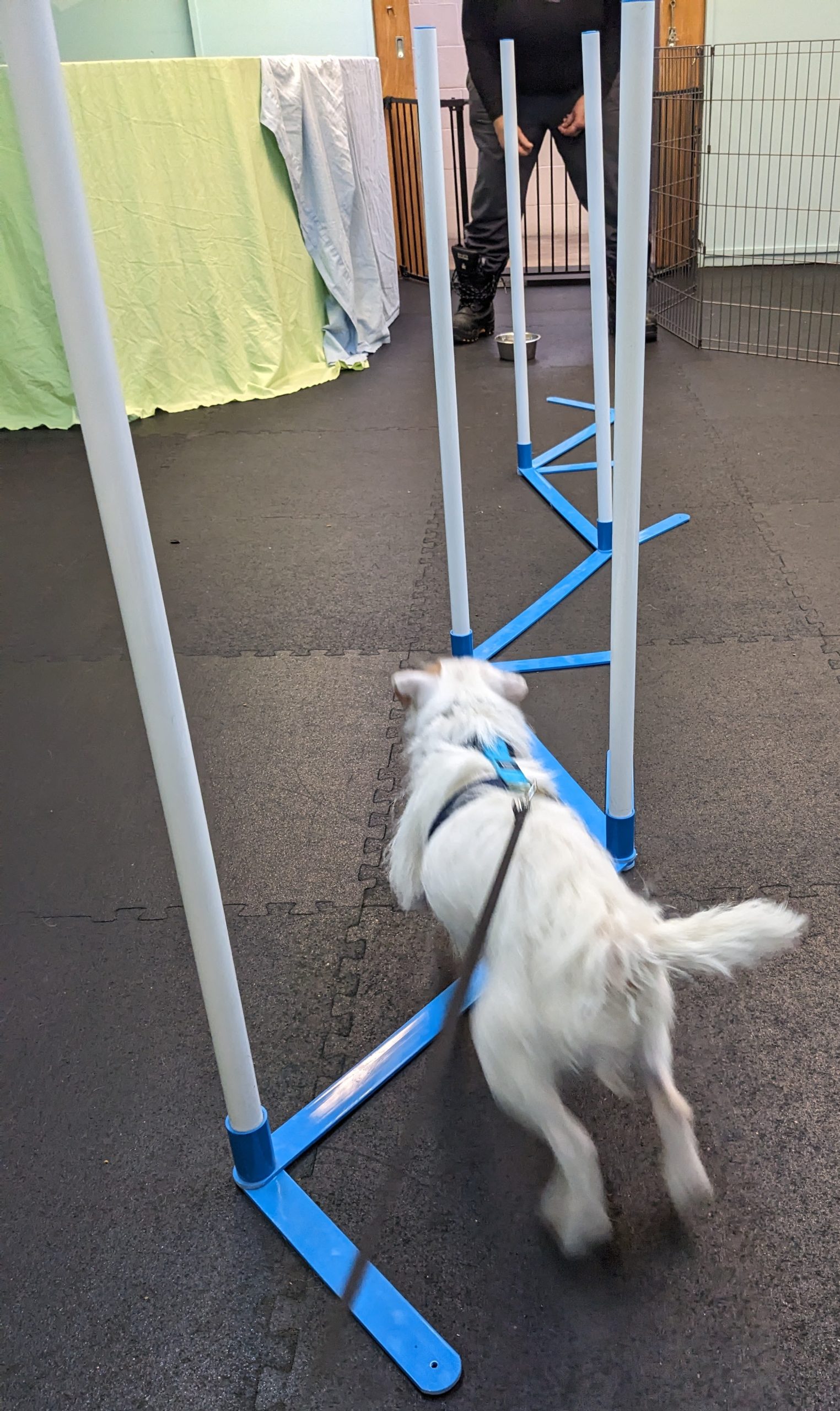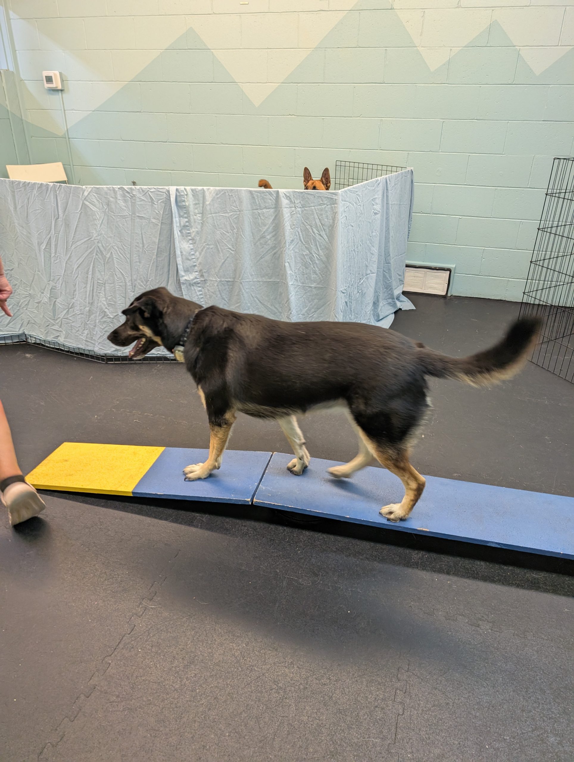 This class is great for teams interested in starting into dog sports like agility. The class focuses on teaching independent sends to obstacles with distance, body awareness and fitness skills essential for dog sports like agility, beginning jumping and obstacle skills, and beginning handler skills. This class is great for working your dog’s body and brain! It’s also a wonderful option for shy or anxious dogs, as all of the body awareness work we do builds confidence!